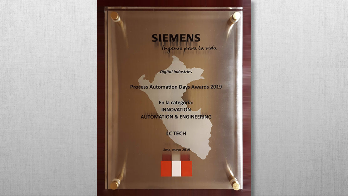 Como resultado de este importante trabajo durante los PA Days 2019, realizados en Lima, Perú, evento en el cual Siemens reconoció los proyectos destacados de sus partners, LC Tech fue galardonando en la categoría INNOVATION, en reconocimiento a su posición como empresa innovadora y al trabajo desarrollado por su equipo de profesionales.